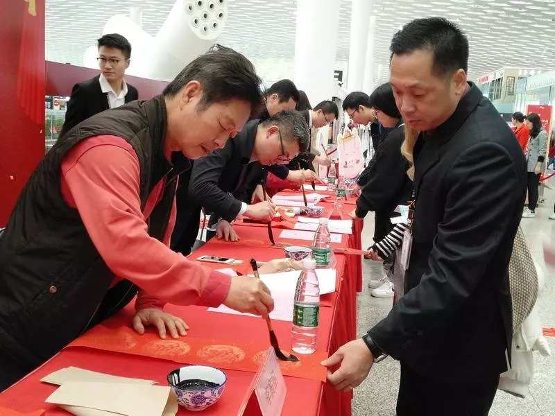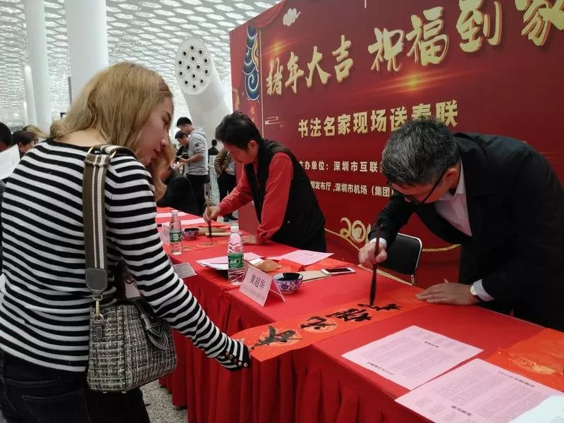 寶安區(qū)書法家協(xié)會主席李高揚介紹,在機場送春聯(lián)很有意義,可以給全國各地的朋友們送上新年祝福。這次深圳發(fā)布廳攜手深圳機場舉辦活動,寶安區(qū)書法家協(xié)會集結(jié)高手出動為群眾服務(wù),為市民送去祝福。他祝大家新春快樂,闔家幸福。