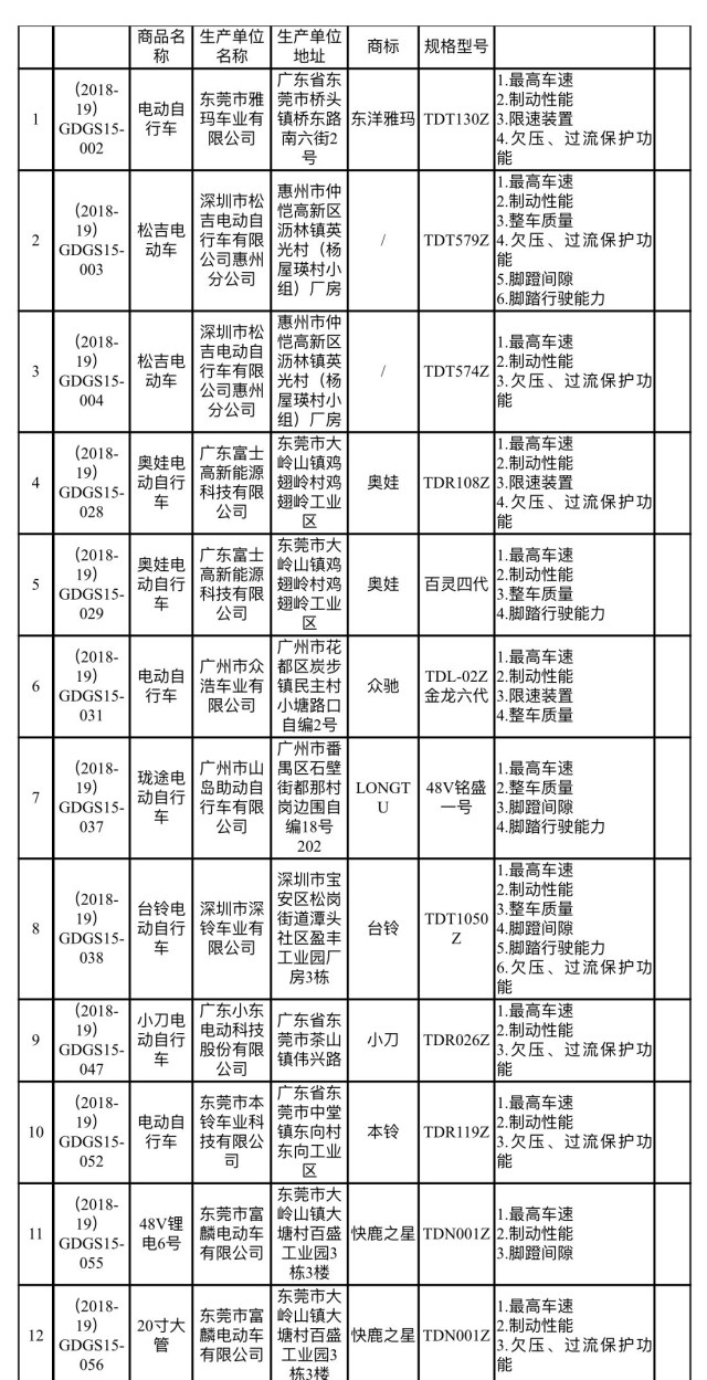 南方網(wǎng)2019年2月14日訊 2月13日,廣東省市場(chǎng)監(jiān)督管理局發(fā)布2018年度流通領(lǐng)域電動(dòng)自行車(含電池和充電器)商品質(zhì)量抽查檢驗(yàn)結(jié)果,60款電動(dòng)自行車(含充電器)監(jiān)督總體不合格。其中,電動(dòng)自行車31款不合格,電動(dòng)自行車充電器29款不合格,愛瑪、臺(tái)鈴、東洋雅瑪、奧娃等品牌紛紛上榜。