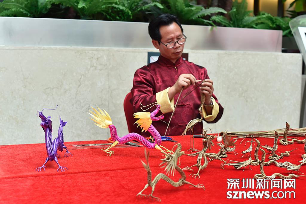 活動(dòng)現(xiàn)場的草編藝人正在編織各種工藝品,草編在中國分布很廣,主要產(chǎn)區(qū)有山東、浙江、廣東、河南等地,在2008年入選第二批國家級非物質(zhì)文化遺產(chǎn)名錄。