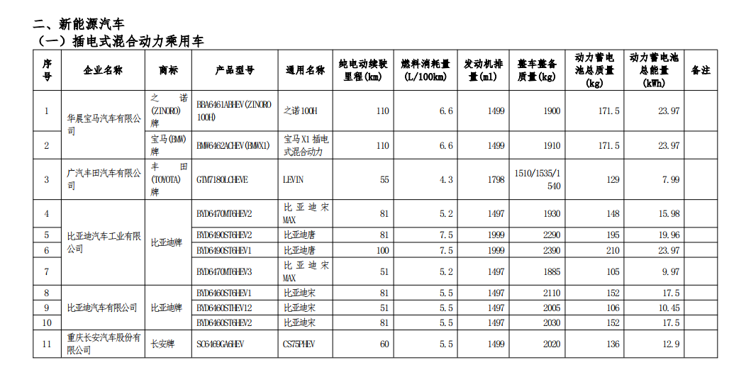 比亞迪多款混合動(dòng)力車入選