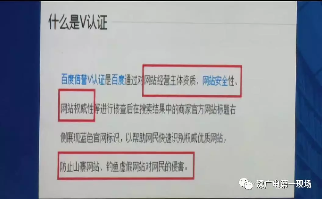 第一,百度V認證是對保障網(wǎng)站的權(quán)威性等而進行的認證,百度V1認證的含義是“基礎(chǔ)信譽積累,可放心訪問”,百度V認證是用怎樣的核查規(guī)則?讓消費者“可放心訪問”的?