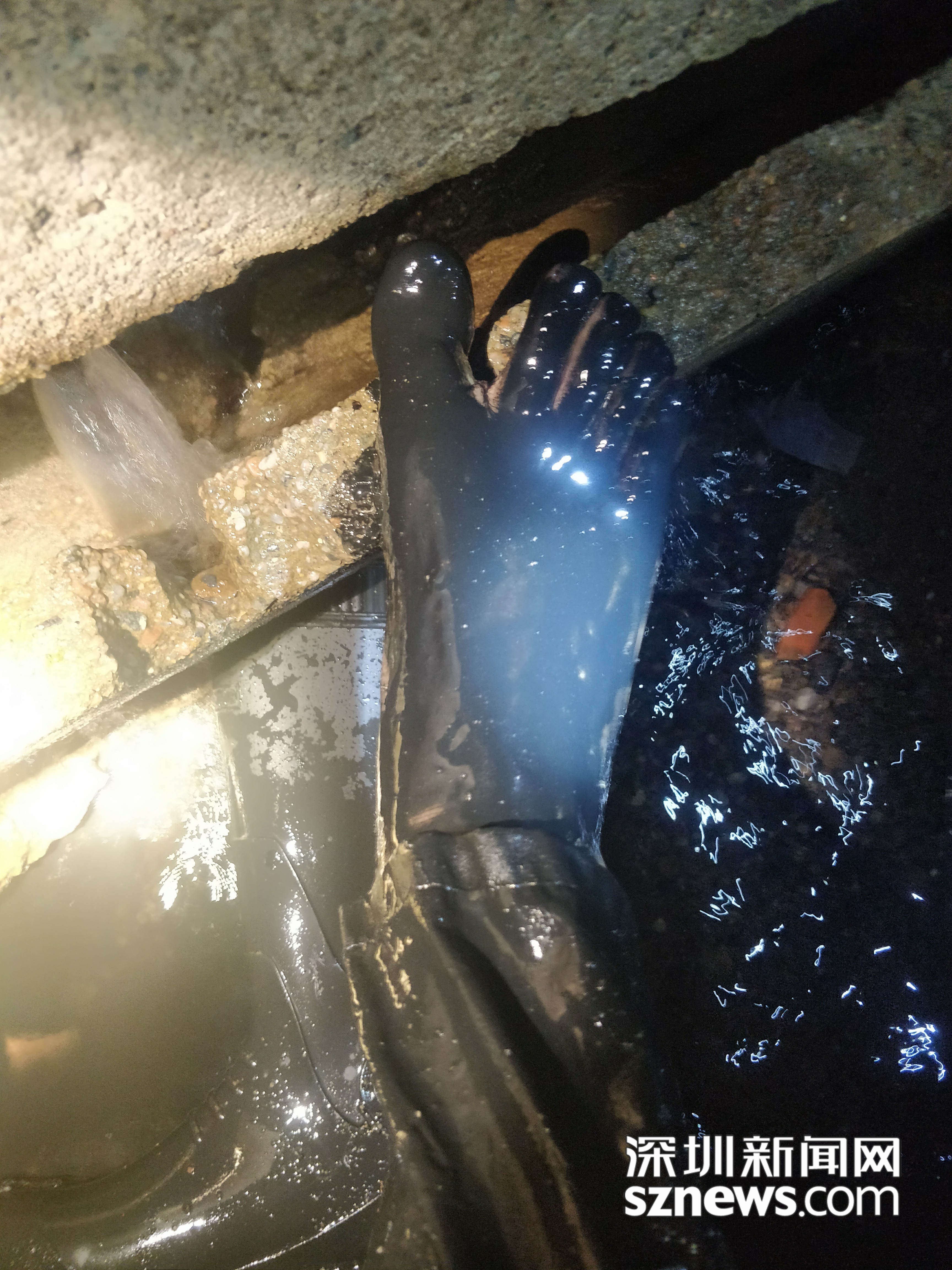 王經(jīng)波在檢查暗渠清疏工作時(shí)不慎踩入淤泥