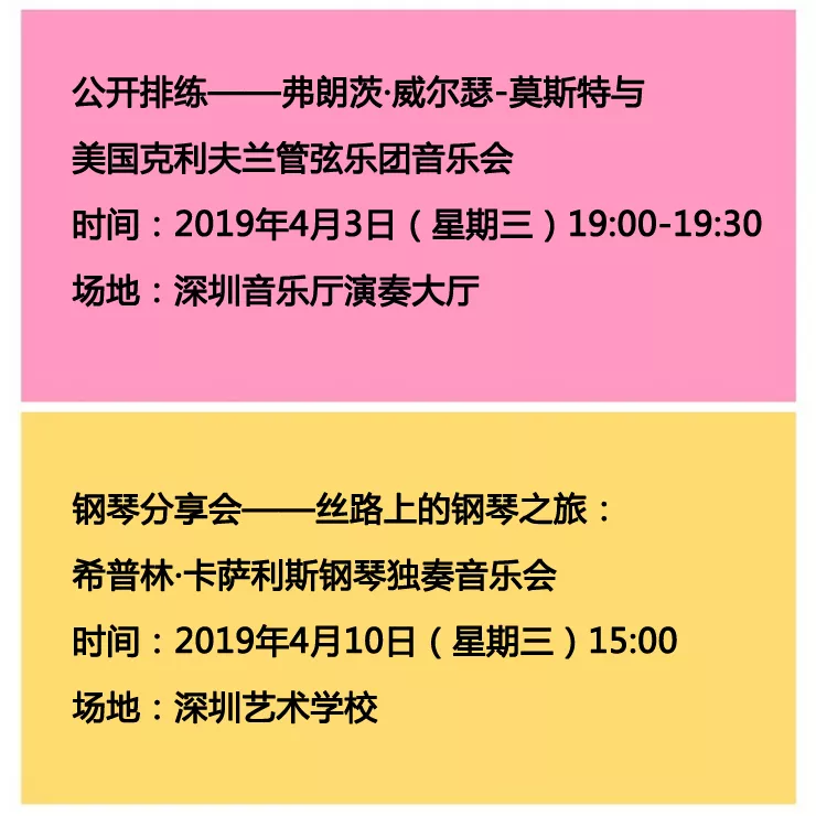 主體活動(dòng)星光燦爛,延展活動(dòng)眾星拱月,優(yōu)惠購(gòu)票、免費(fèi)招募、免費(fèi)參與靜等你來(lái)!參與方式可關(guān)注“深圳一帶一路音樂(lè)季”微信公共號(hào)。