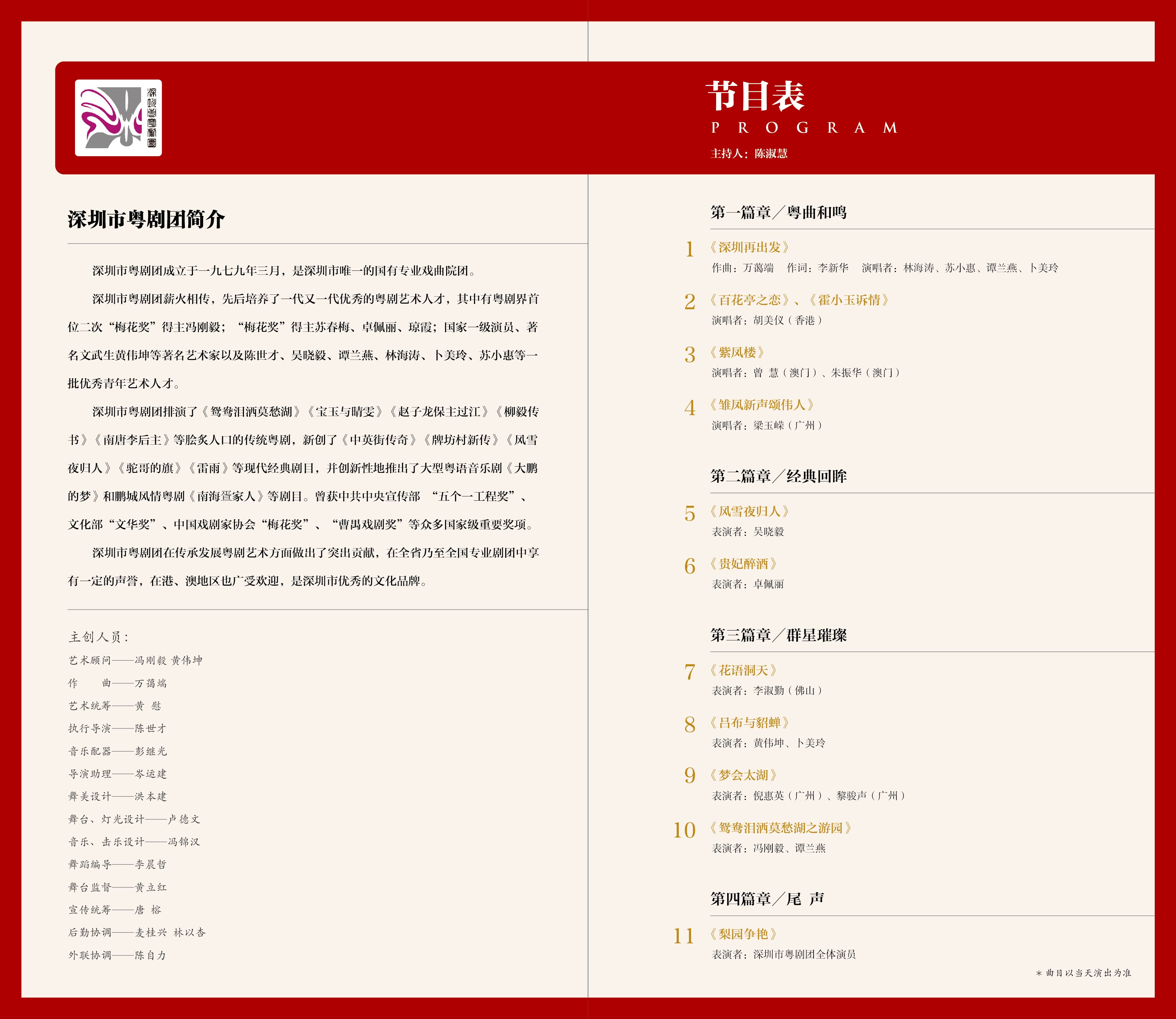 “輝煌四十年,深圳再出發(fā)”。四十年來,深圳粵劇團(tuán)緊跟城市發(fā)展的步伐,風(fēng)雨兼程,培養(yǎng)了馮剛毅、蘇春梅、黃偉坤等一批優(yōu)秀的粵劇表演藝術(shù)家,創(chuàng)作出《風(fēng)雪夜歸人》《中英街傳奇》《駝哥的旗》等一大批優(yōu)秀藝術(shù)作品,打造了具有地方特色的粵劇“碼頭”。