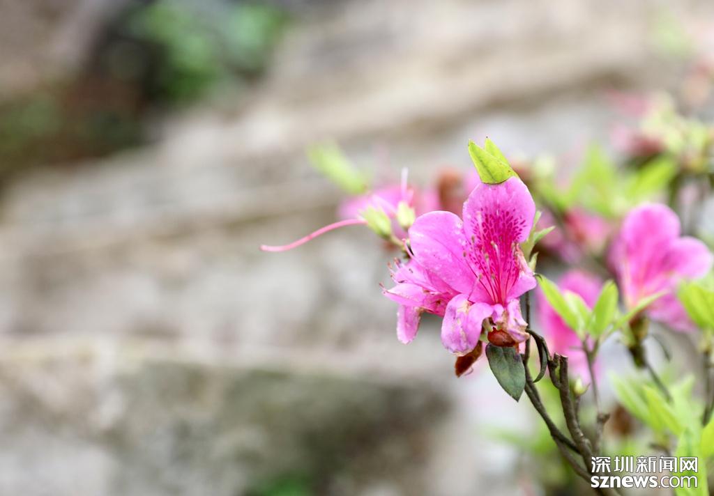 在陽光沐浴下的杜鵑花,粉粉嫩嫩,嬌艷欲滴。