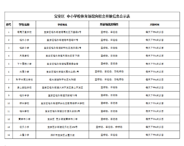 深圳市教育局關(guān)于學(xué)校體育館向社會開放的信息公告