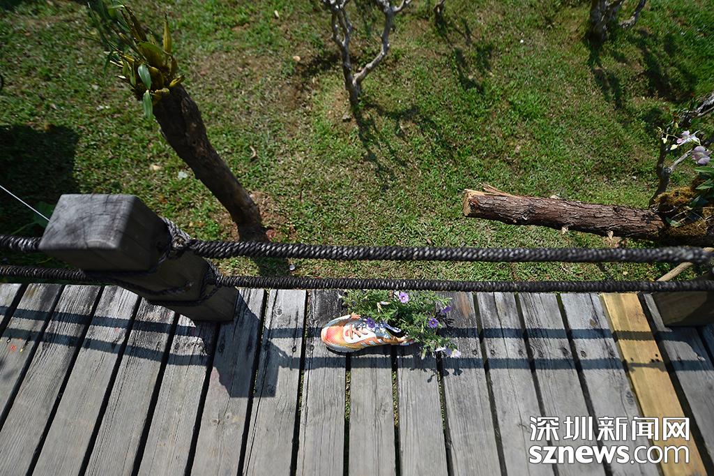 園林設計師將廢棄的鞋子進行二次利用,將花草種在鞋子中