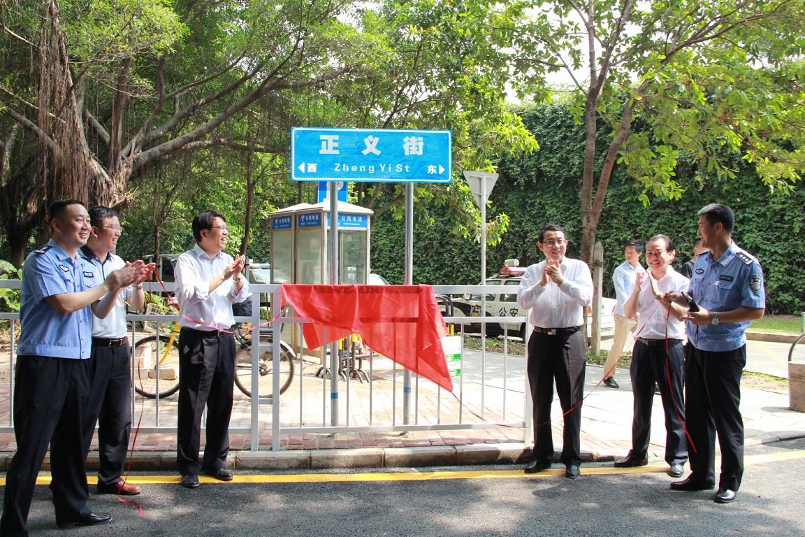 2014年,在福田區(qū)人大代表,龍崗公安分局黨委委員、副局長,時任福田派出所所長劉鳳飛的倡議下,重新修繕了福田派出所門前這條長73米,坑洼不平、年久失修的無名路,并通過法定程序為這條路起了一個響亮的名字:正義街,寓意警民同心,共同維護深圳社會正義。