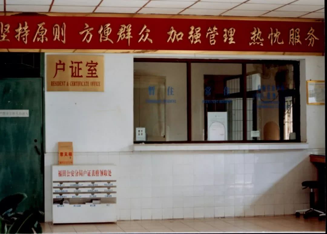 照片中,在水泥門樓的一側(cè)掛著一塊政府機關(guān)牌匾,白底黑字落有“深圳市公安局福田派出所”幾個大字。門樓上的五星紅旗熠熠生輝,透過門樓,內(nèi)部有個寬敞的小院,供巡邏車停放及日常操練,再往里走便是一幢3層樓高的辦公樓,辦公樓的中央懸掛一枚警徽,彰顯警隊的莊嚴。一樓是戶政室,一縷陽光透過窗戶灑進來,讓辦事的群眾感到溫暖,也給門欄上“堅持原則 方便群眾加強管理熱忱服務(wù)”16個字鍍上了金邊,這是福田派出所對轄區(qū)老百姓的堅定承諾。