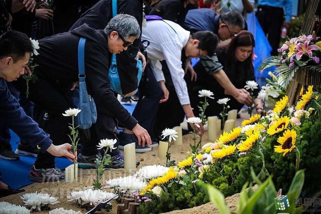 參與海樹葬的家屬手持獻花。近年來,生態(tài)殯葬被更多的深圳人所接受。
