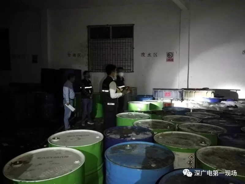 進(jìn)入倉庫后,內(nèi)部的情況讓大家“大吃一驚”,里面密密麻麻堆放了大概近百個(gè)塑料桶,初步統(tǒng)計(jì)有8噸左右的危險(xiǎn)化學(xué)品。