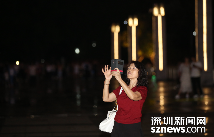 現(xiàn)場(chǎng)觀看燈光秀的市民