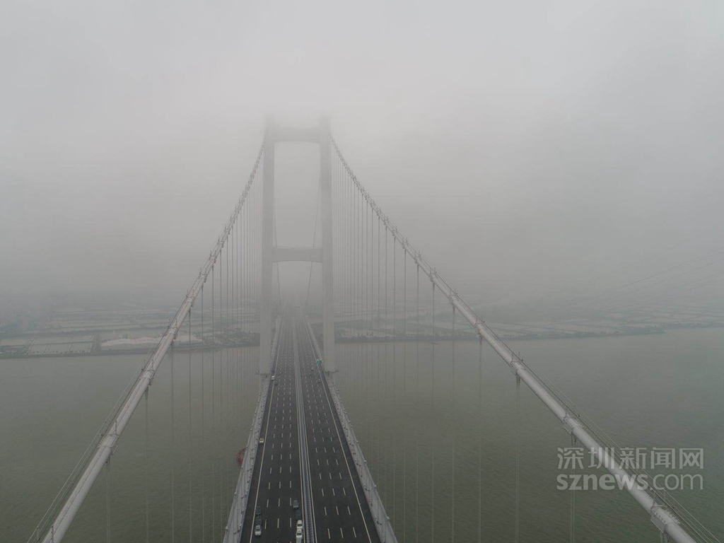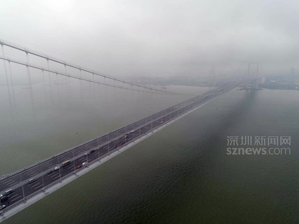 4月1日,微風(fēng)細(xì)雨中的虎門二橋(現(xiàn)名為“南沙大橋”)