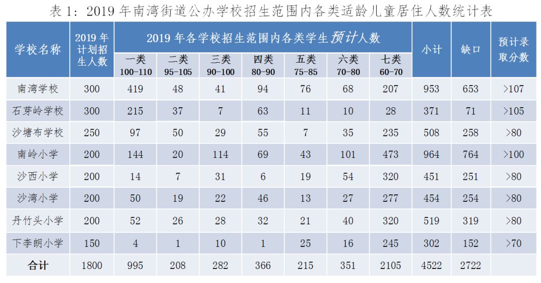2019年南灣街道公辦學(xué)校招生范圍內(nèi)各類適齡兒童居住人數(shù)統(tǒng)計(jì)表