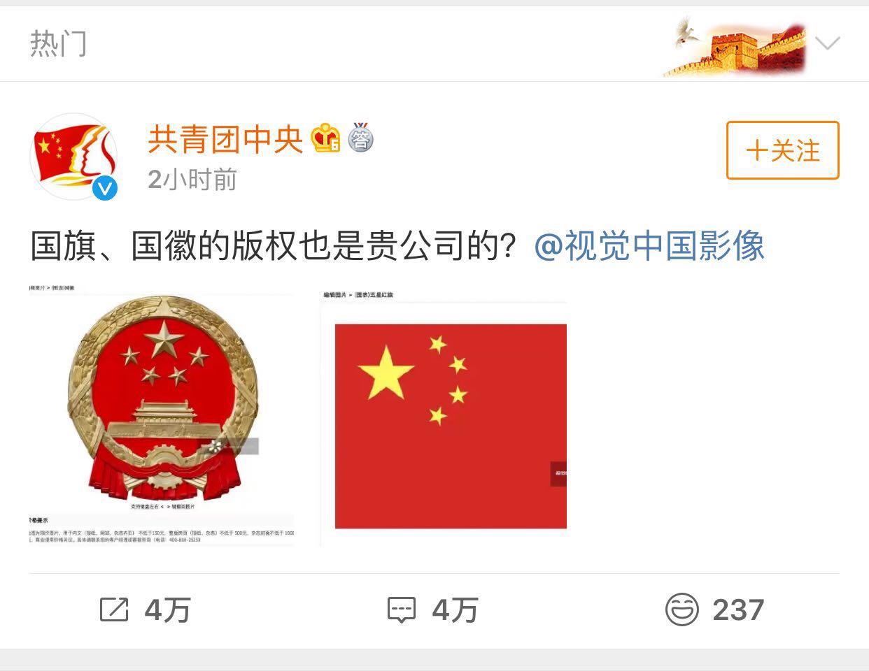 說(shuō)個(gè)題外話,聽(tīng)說(shuō)這黑洞照片的版權(quán)是視覺(jué)中國(guó)的。。。還聽(tīng)說(shuō)國(guó)徽、國(guó)旗的版權(quán)也是視覺(jué)中國(guó)的