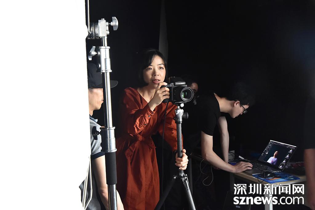 拍攝間隙,羅嫻查看照片
