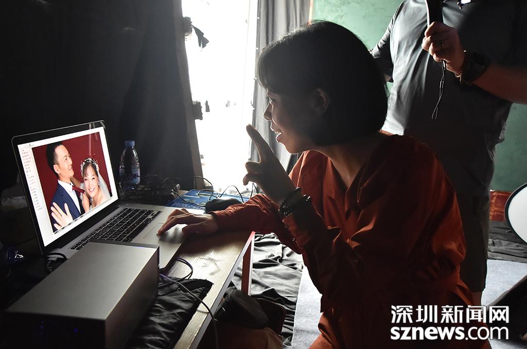 拍攝間隙,羅嫻查看照片