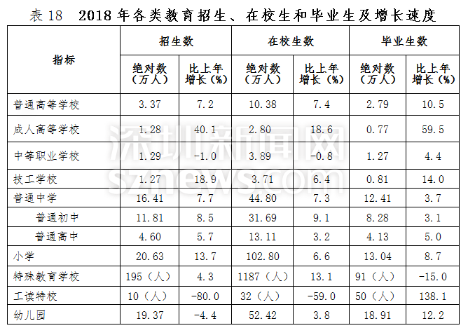 深圳新聞網(wǎng)2019年4月19日訊(記者 劉夢婷 通訊員 胡雪濤)4月19日,記者從深圳市統(tǒng)計局獲悉,深圳市2018國民經(jīng)濟與社會發(fā)展統(tǒng)計公報出爐:全市實現(xiàn)地區(qū)生產(chǎn)總值24221.98億元,比上年增長7.6%,常住人口達1302.66萬人。人均可支配收入57543.60元,居民人均消費支出40535.02元。總體來看,2018年深圳經(jīng)濟運行穩(wěn)健,主要經(jīng)濟指標(biāo)表現(xiàn)良好,高質(zhì)量發(fā)展扎實推進。