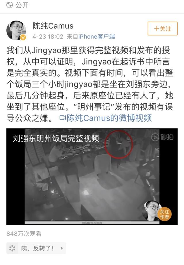 就在人們以為事件就此平息的時候,又爆出一系列和該案有關(guān)的料。首先是本案當事人LIUJINGYAO宣布起訴京東集團及劉強東。4月22日、23日微博上爆出監(jiān)控視頻以及劉強東美國律師和LIUJINGYAO之間電話談話的錄音。