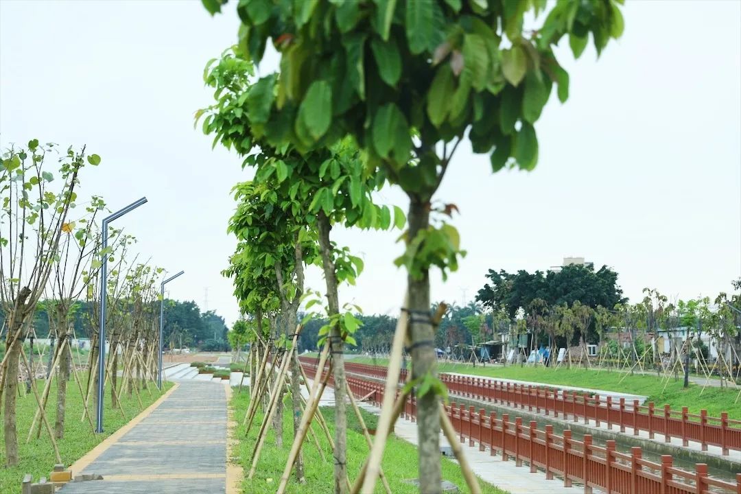 看到兩岸新修的朱紅色仿木欄桿