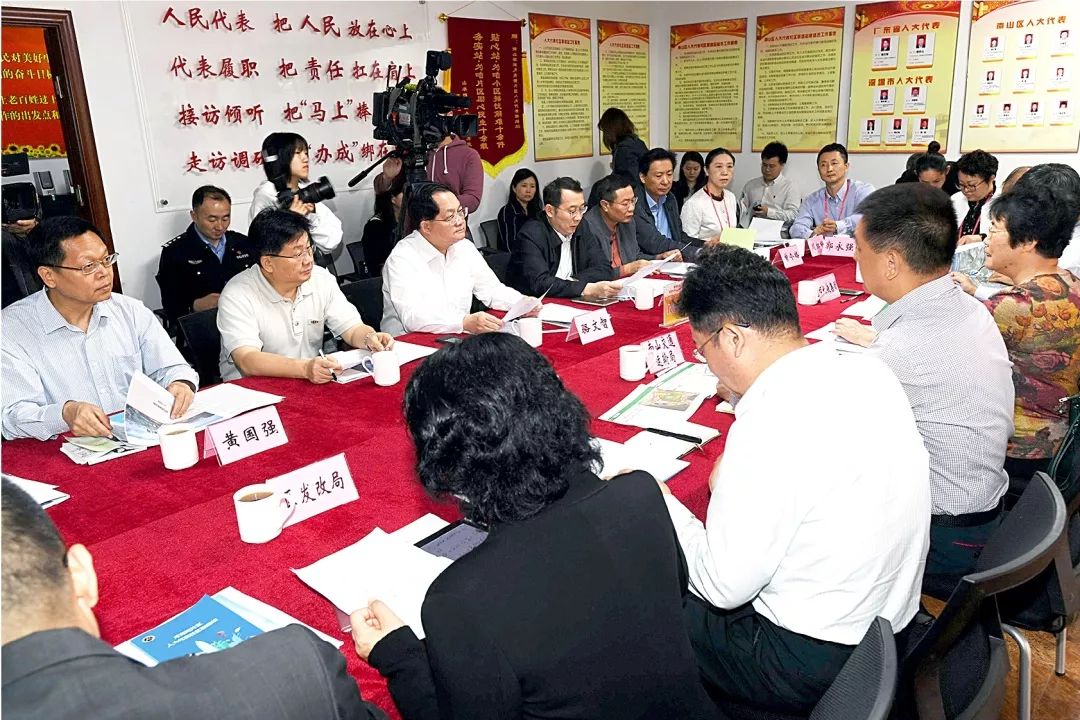 5月8日,南山街道月亮灣片區(qū)人大代表社區(qū)聯(lián)絡站召開代表議事會。深圳市人大常委會主任駱文智、南山區(qū)委書記王強、區(qū)人大常委會主任麥林光,與駐站市、區(qū)人大代表,居民代表圍繞“完善地鐵站點與地面交通接駁,緩解月亮灣片區(qū)居民出行難”主題進行熱烈討論。