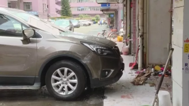今天早上10點03分,深圳寶安區(qū)西鄉(xiāng)街道福中福社區(qū)內(nèi)的停車場,一輛別克SUV突然失控撞向街邊一家賣女性服裝的店鋪。