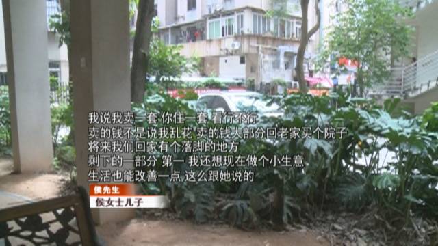 侯女士表示,自己跟兒子差不多有12年沒有聯(lián)系了,其實兒子自己在廣州也有房子,還是別墅,兒子這次過來主要是想賣掉套房子來套錢,甚至有點想趕她回老家的意思。
