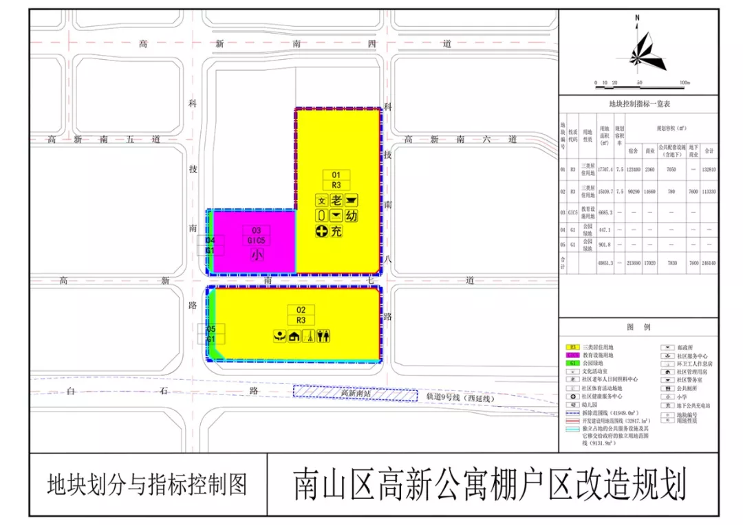 ▲南山區(qū)高新公寓棚戶(hù)區(qū)改造規(guī)劃地塊劃分與指標(biāo)控制圖
