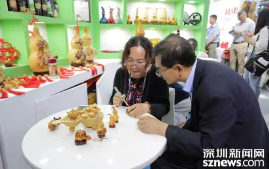 葫蘆刻繪展區(qū),傳承人在介紹葫蘆畫(huà)的繪制。深圳新聞網(wǎng)記者 潘潤(rùn)華 攝