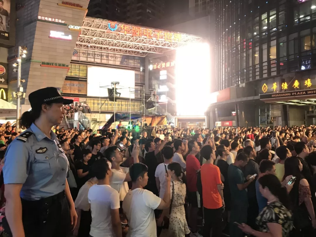 △華強(qiáng)北派出所民警在賽格廣場夜間巡邏。