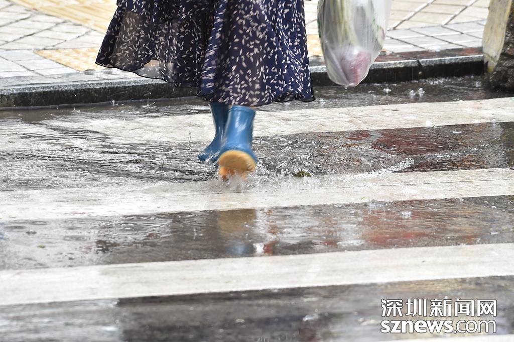 大雨中出行,不少市民腳穿雨靴
