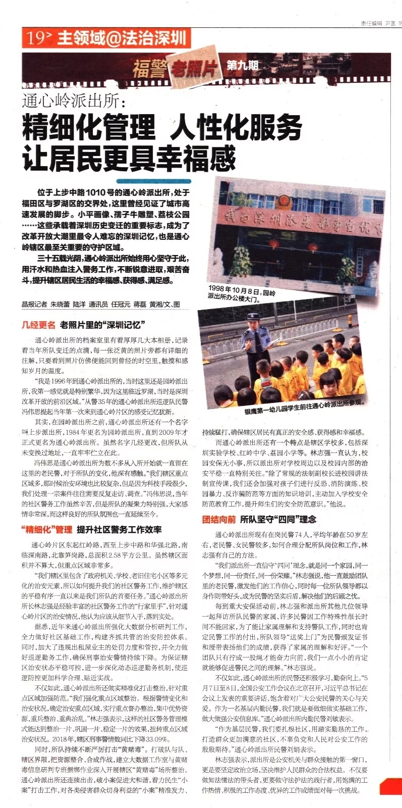 而通心嶺派出所還有一個特點是轄區(qū)學(xué)校多,包括深圳實驗學(xué)校、紅嶺中學(xué)、荔園小學(xué)等。林志強一直認為,校園安保無小事,所以派出所對學(xué)校周邊以及校園內(nèi)部的治安平穩(wěn)一直特別關(guān)注。