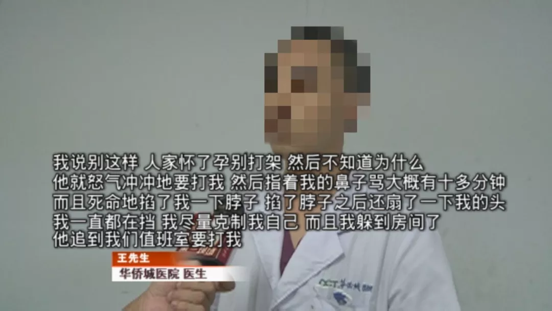 由于陳女士有孕在身,王醫(yī)生見狀,擔(dān)心陳女士會受到更嚴(yán)重的傷害,于是上前和石某理論,希望調(diào)停,沒想到自己也遭了殃。