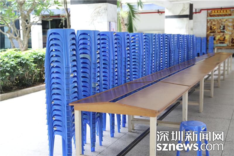 考點內(nèi)已備好座椅,為第二天的高考提供便利