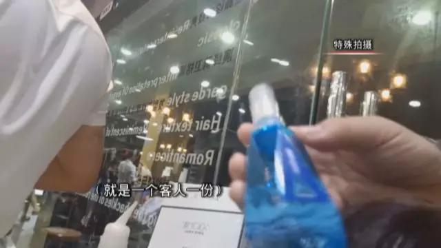 如此廉價(jià)的燙染藥水,美容美發(fā)店還涉嫌一次多用。在體驗(yàn)時(shí)發(fā)型師一再?gòu)?qiáng)調(diào),藥水一旦開封就會(huì)進(jìn)空氣,一瓶用完中途不能更換。但是實(shí)際體驗(yàn)時(shí),記者發(fā)現(xiàn)瓶中的燙染藥水并不是滿的。待記者離開后,發(fā)型師將用過的燙染藥水保留下來繼續(xù)使用。