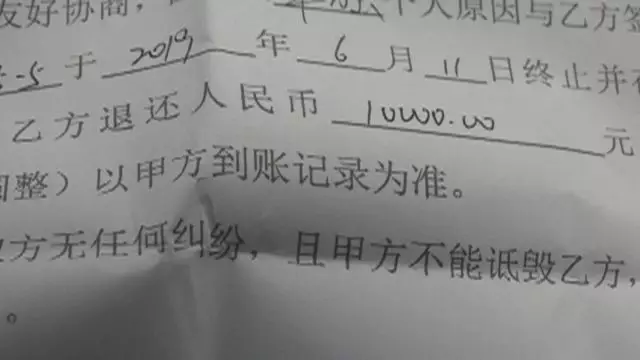 單先生出示了雙方簽的協(xié)議,雙方于6月11日解約,乙方拍賣公司退還甲方單先生1萬元,“雙方無任何糾紛,甲方不得詆毀乙方”。公司另外補(bǔ)償?shù)?000元沒寫在協(xié)議上,但已經(jīng)打到單先生妻子賬戶上。