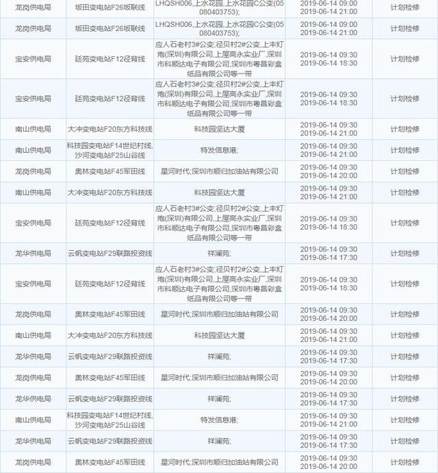 南方電網(wǎng)發(fā)布6月13日至6月16日深圳停電計劃 涉及多個區(qū)