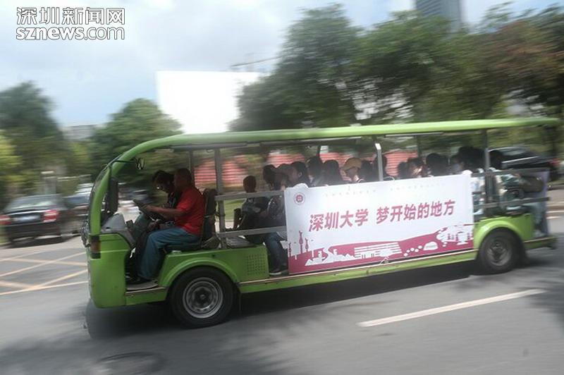 開放日校方免費開放了電瓶車搭載學(xué)生家長進行參觀
