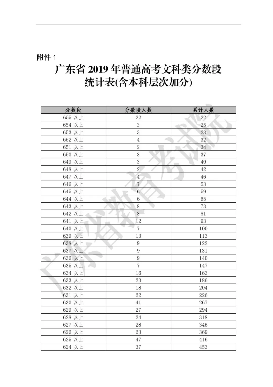 廣東高考成績各分?jǐn)?shù)段數(shù)據(jù)公布:文科655分、理科691分以上各22人
