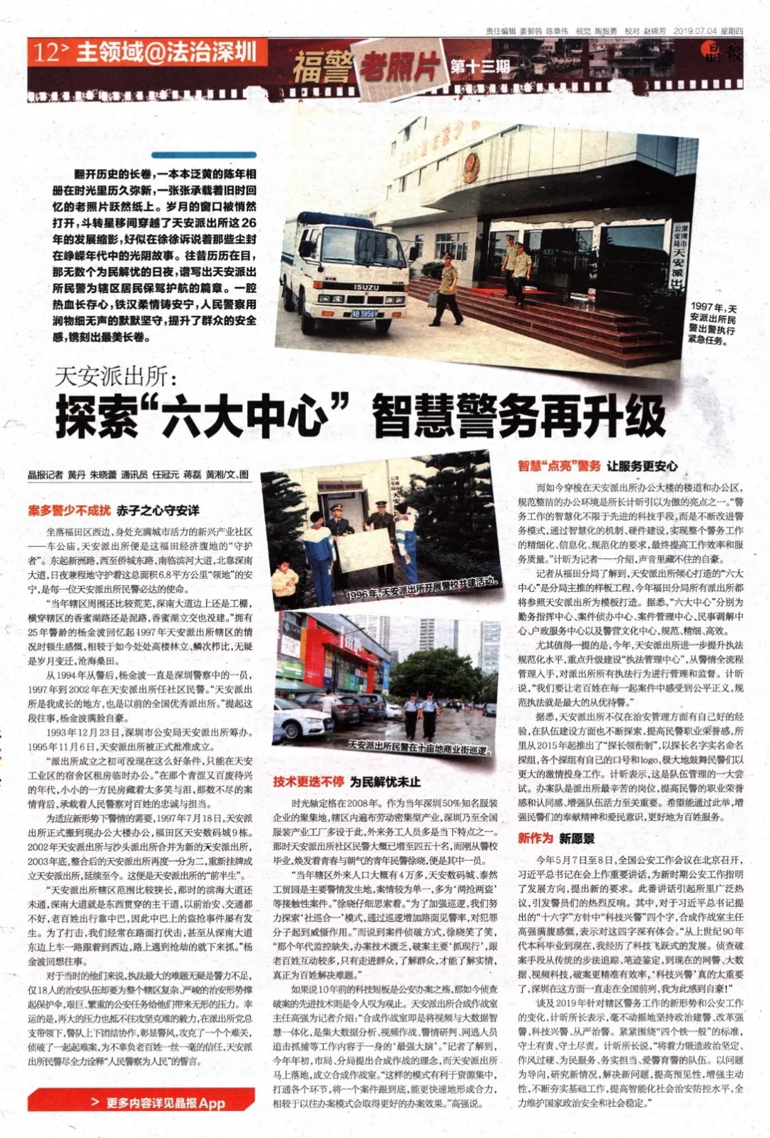 “當(dāng)年轄區(qū)外來人口大概有4萬多,天安數(shù)碼城、泰然工貿(mào)園是主要警情發(fā)生地,案情較為單一,多為‘兩搶兩盜’等接觸性案件。”徐曉仔細(xì)思索著。“為了加強(qiáng)巡邏,我們努力探索‘社巡合一’模式,通過巡邏增加路面見警率,對犯罪分子起到威懾作用?!倍f到案件偵破方式,徐曉笑了笑,“那個年代監(jiān)控缺失,辦案技術(shù)匱乏,破案主要‘抓現(xiàn)行’,跟老百姓互動較多,只有走進(jìn)群眾,了解群眾,才能了解實(shí)情,真正為百姓解決難題。”