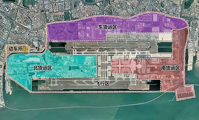 主要包括東貨運區(qū)、南貨運區(qū)、北貨運區(qū)以及機場東動車所等四個功能分區(qū)。