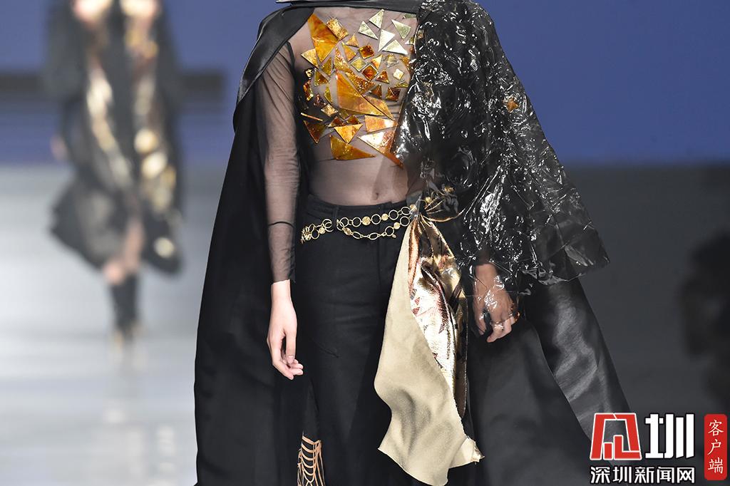 時(shí)裝優(yōu)秀學(xué)生組展示環(huán)節(jié),設(shè)計(jì)師肖榕作品,其作品以純黑色系為主