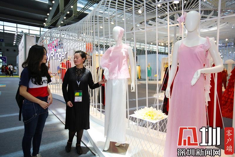 前來(lái)觀展的羅女士表示,“這個(gè)展館的服裝手感舒適,壓褶圖案比較精美,好看。”