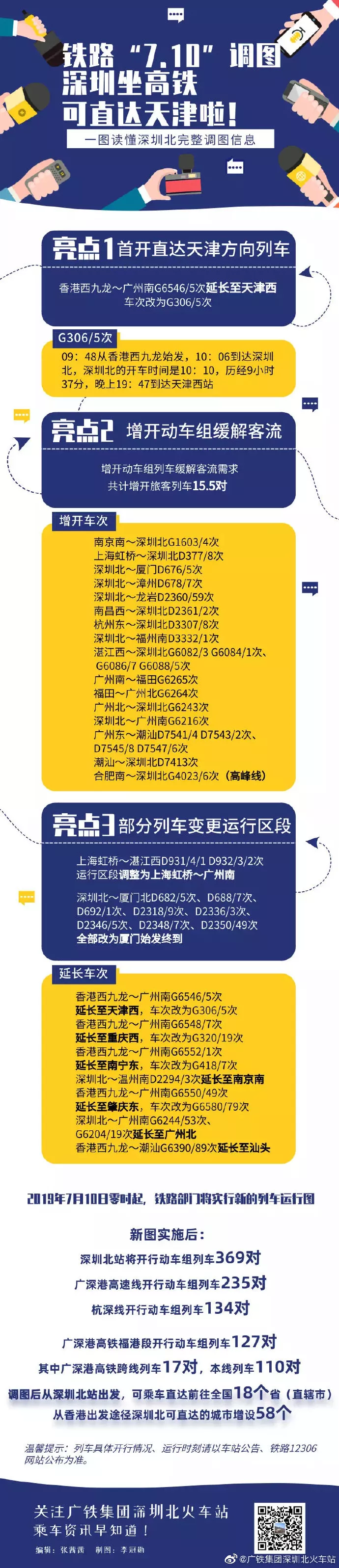 根據新的運行圖安排,深圳北站將開行動車組列車369對,廣深港高速線開行動車組列車235對;杭深線開行動車組列車134對?!?·10”調圖后,深圳北站首開前往天津方向列車,屆時從深圳北站出發(fā),可乘車直達前往全國18個?。ㄖ陛犑校?;從香港出發(fā)途徑深圳北可直達的城市增設58個。