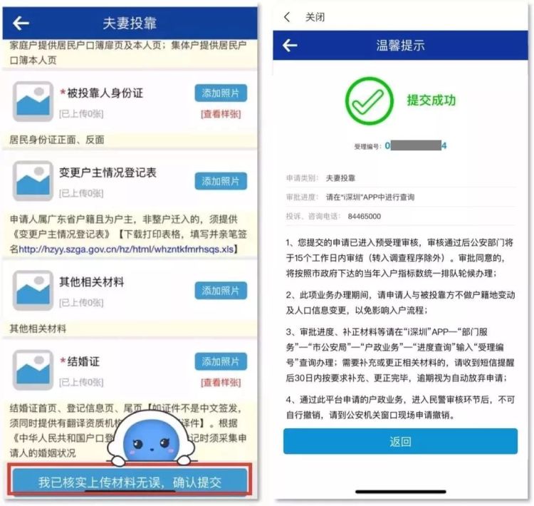 其具體操作流程:詳細(xì)閱讀告知書和辦理須知、選擇申請(qǐng)情形、填寫申請(qǐng)人信息、上傳材料并提交申請(qǐng)。操作提交成功后,市民請(qǐng)保持手機(jī)通訊暢通,受理編號(hào)、補(bǔ)正材料通知,審批結(jié)果等相關(guān)信息將通過短信告知,工作人員將通過系統(tǒng)后臺(tái)對(duì)申請(qǐng)資料進(jìn)行審核。審核通過的,將通知申請(qǐng)人通過預(yù)約方式攜帶申請(qǐng)材料(原件及復(fù)印件)到指定戶政窗口完成“一站式”辦理,群眾無(wú)需多次往返奔波。