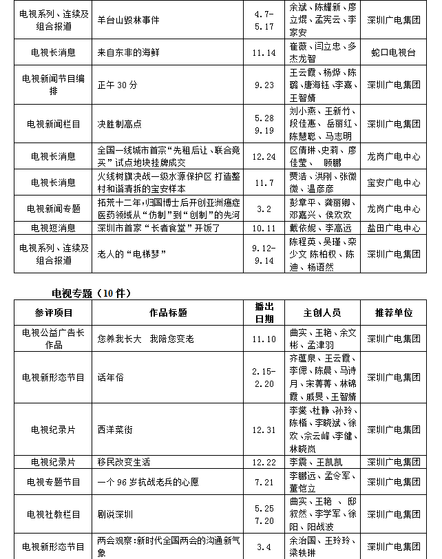 第26屆(2018年度)深圳新聞獎獲獎作品目錄