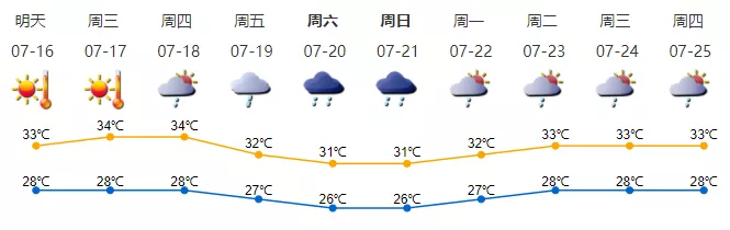 【深圳天氣趨勢】未來2-3天高溫天氣持續(xù):16-17日天氣炎熱至酷熱,偶有短時陣雨,最高氣溫33-35℃;18日天氣炎熱轉(zhuǎn)雷雨;19-21日降雨增多,部分時間雨勢較大。高溫黃色預(yù)警生效中,請做好防暑降溫、食品安全保障工作。