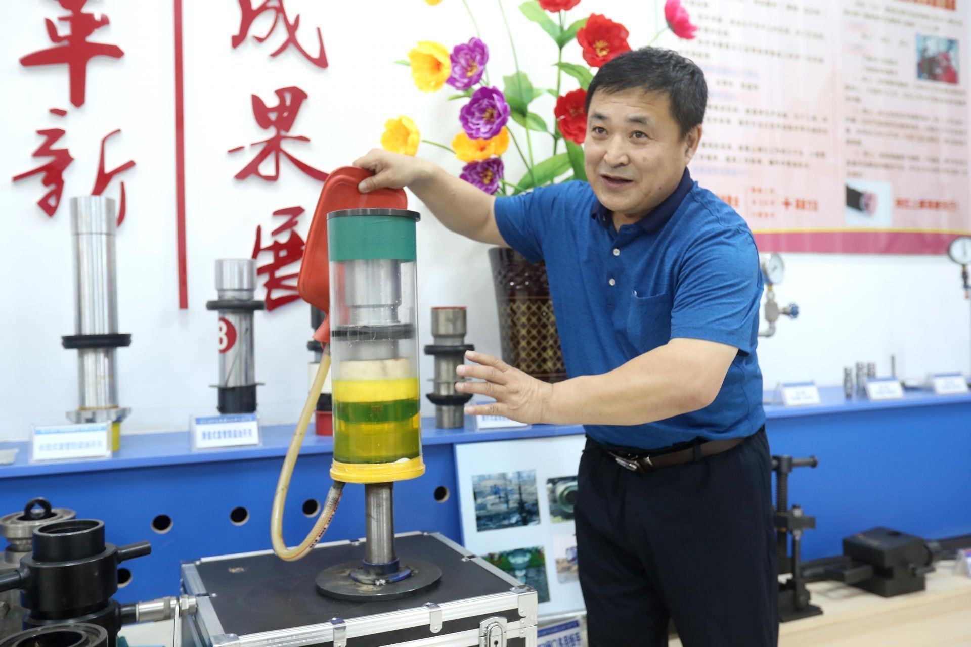 見到段福海時,他身著一件藍色Polo杉,笑瞇瞇的,個頭敦實,走路很快。在二樓展示廳里的一面墻上,擺滿了段福海的“發(fā)明創(chuàng)造”所獲的獎狀。而在一墻之隔的“勞模創(chuàng)新工作室”,他發(fā)明的“家伙什兒”堆滿了整間屋。他用那布滿老繭的厚厚手掌隨便拿起一個,開始向記者介紹其用途?!澳憧?,這個小東西成本才五毛錢,卻解決了100萬的難題。這個鋼絲球兩塊錢,但給國家省了……”在油田一線工作的35年間,段福海研發(fā)的創(chuàng)新成果多達232項,累計創(chuàng)造經(jīng)濟效益2.38億元。