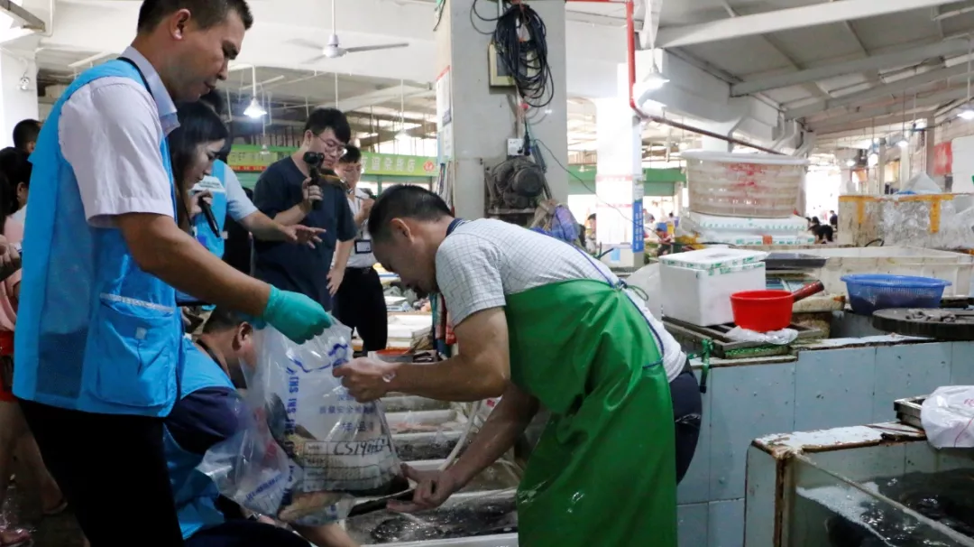 7月26日,深圳市市場監(jiān)管局在大鵬新區(qū)大鵬市場開展2019年度第五期“農(nóng)產(chǎn)品任你查”專項行動,深圳市市場監(jiān)管局農(nóng)業(yè)處工作人員,大鵬局、轄區(qū)監(jiān)管所執(zhí)法人員,市農(nóng)檢中心專家和技術(shù)人員,一街一車一室檢測人員以及新聞媒體等30多人共同參與此次監(jiān)督檢查行動,此次行動由深圳新聞網(wǎng)、晶報、深圳特區(qū)報、騰訊大粵網(wǎng)、鳳凰網(wǎng)五家媒體記者進行全程直播。與此同時,全市其它9個區(qū)也同時開展“農(nóng)產(chǎn)品任你查”專項行動。
