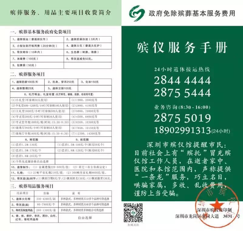 “深圳只有一家合法的殯儀館,就是深圳市殯儀館,其殯儀收費(fèi)標(biāo)準(zhǔn)可以通過‘深圳民政在線’的‘殯儀服務(wù)’查詢?!笔袣浌芩嚓P(guān)負(fù)責(zé)人表示,市民也可以關(guān)注“深圳市殯儀館”的微信公眾號(hào)查詢治喪流程、聯(lián)系電話和收費(fèi)標(biāo)準(zhǔn)。